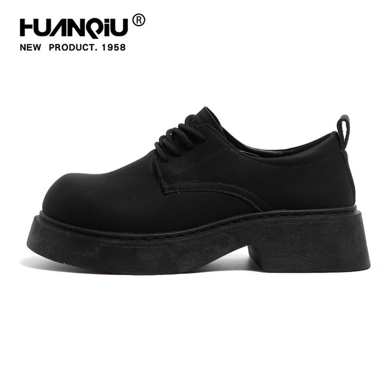 环球黑色德比鞋男款圆头大头鞋厚底增高工装鞋休闲皮鞋通勤马丁靴