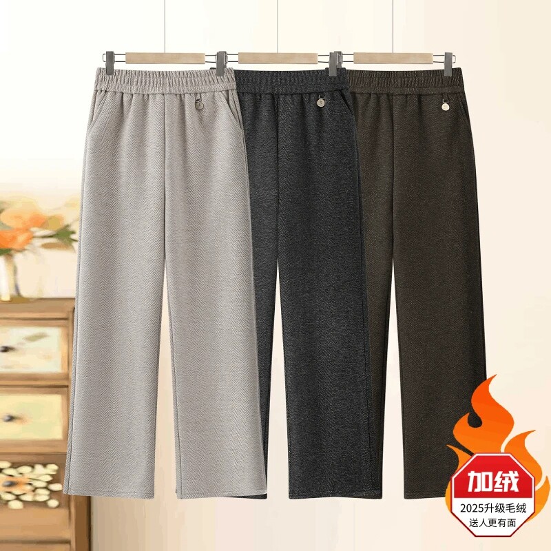 秋冬中老年妈妈装百搭洋气减龄高腰休闲大码宽松直筒裤女加绒加厚