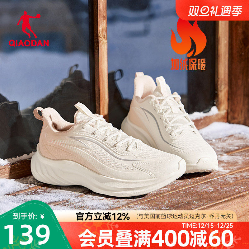 乔丹加绒运动鞋跑步鞋女2025冬季新款皮面防水棉鞋轻便减震慢跑鞋