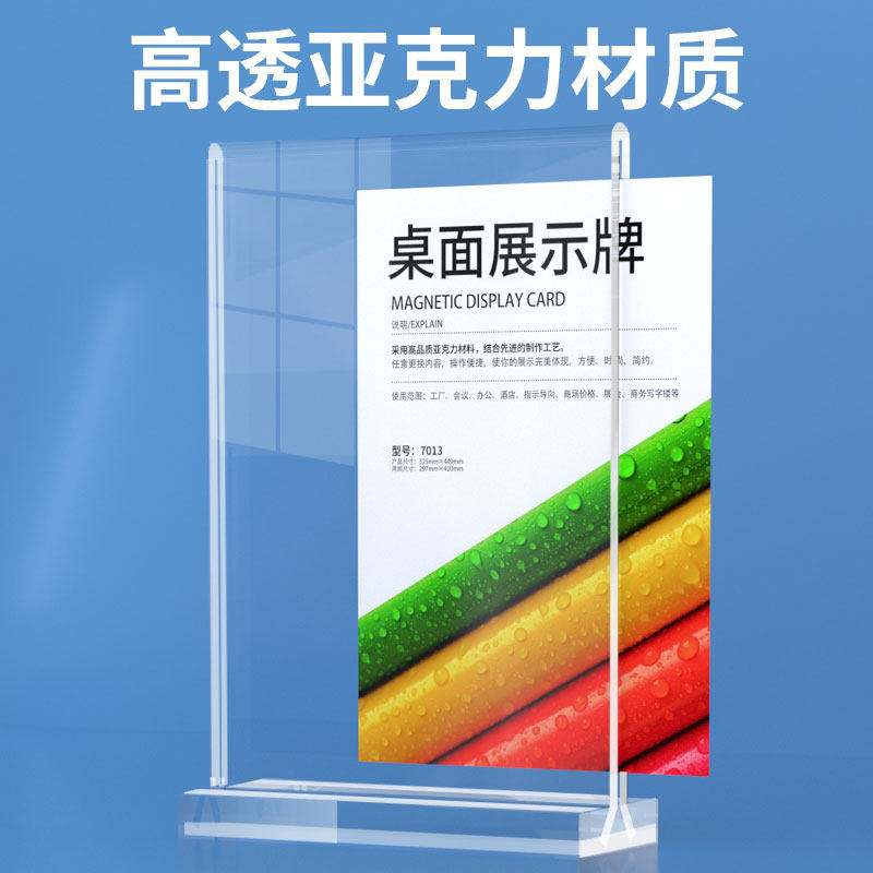 亚克力T型展示架台卡桌牌双面透明立牌a4抽拉 台签展示牌A5桌卡个性创意A6餐牌酒水晶定制菜单广告价目表