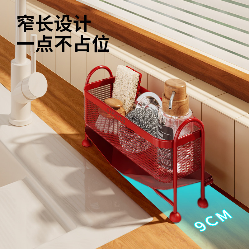 川岛屋厨房水槽沥水架抹布洗碗海绵收纳架子水池窄边多功能置物架