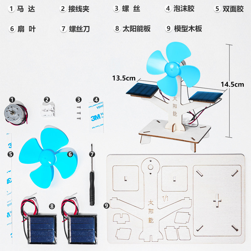 木质太阳能风扇 手工DIY学生科技小制作科学兴趣培养实验材料包新