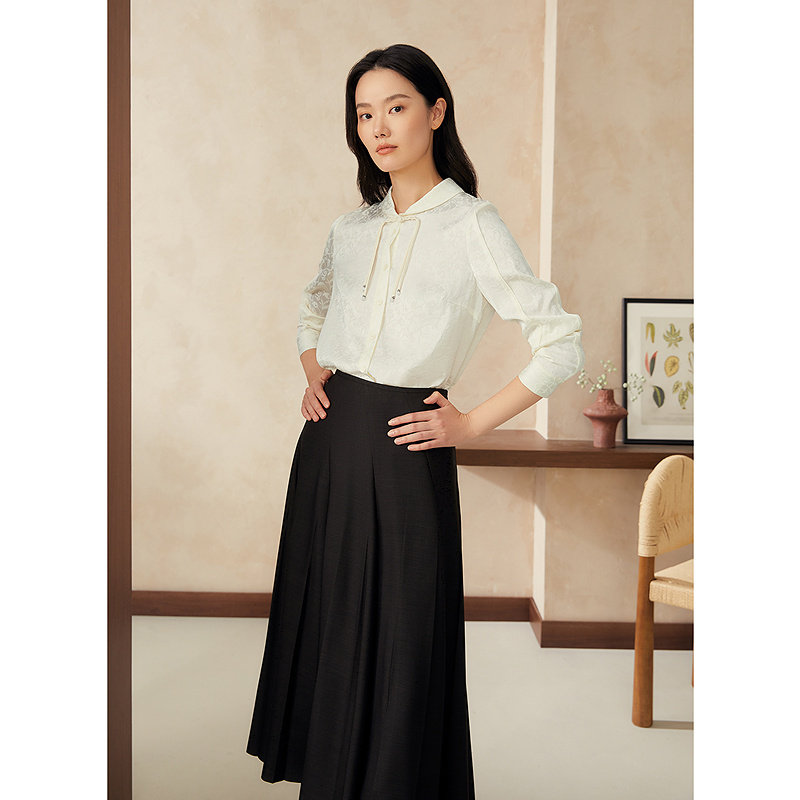 YINER音儿2025春季新款新中式盘扣提花肌理桑蚕丝真丝衬衫上衣