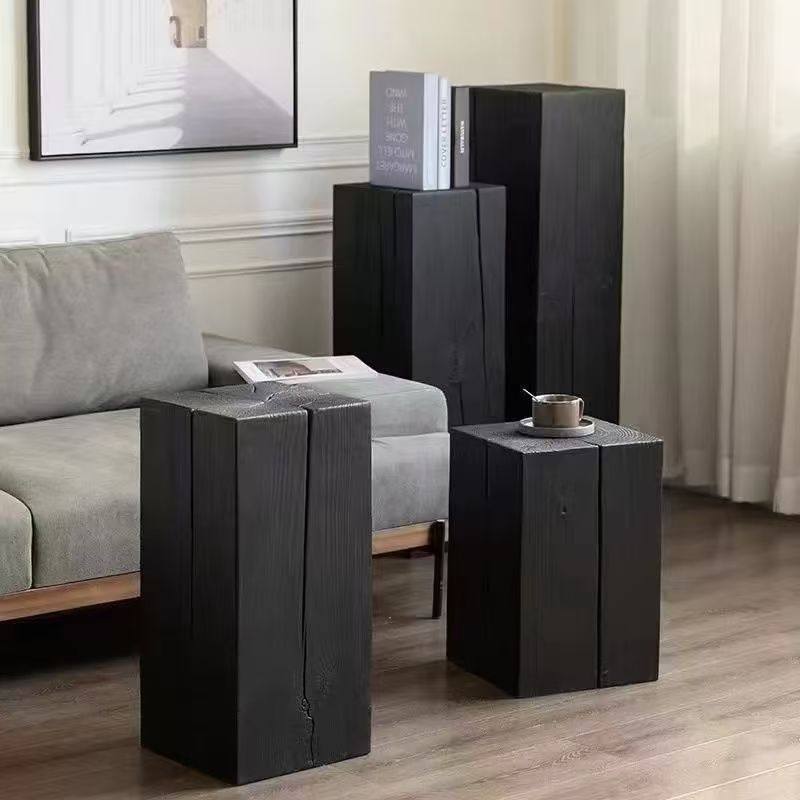 实木方形木墩子花架花几碳化黑色树桩底座木桩茶几坐凳摆件边几