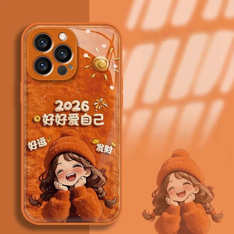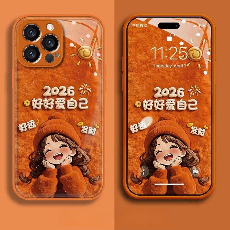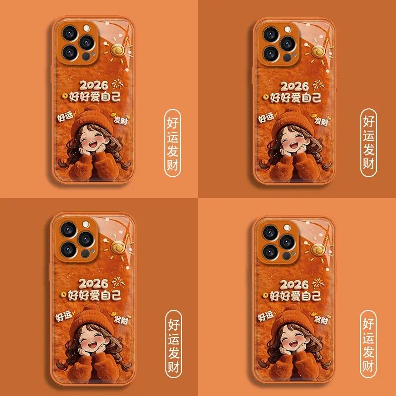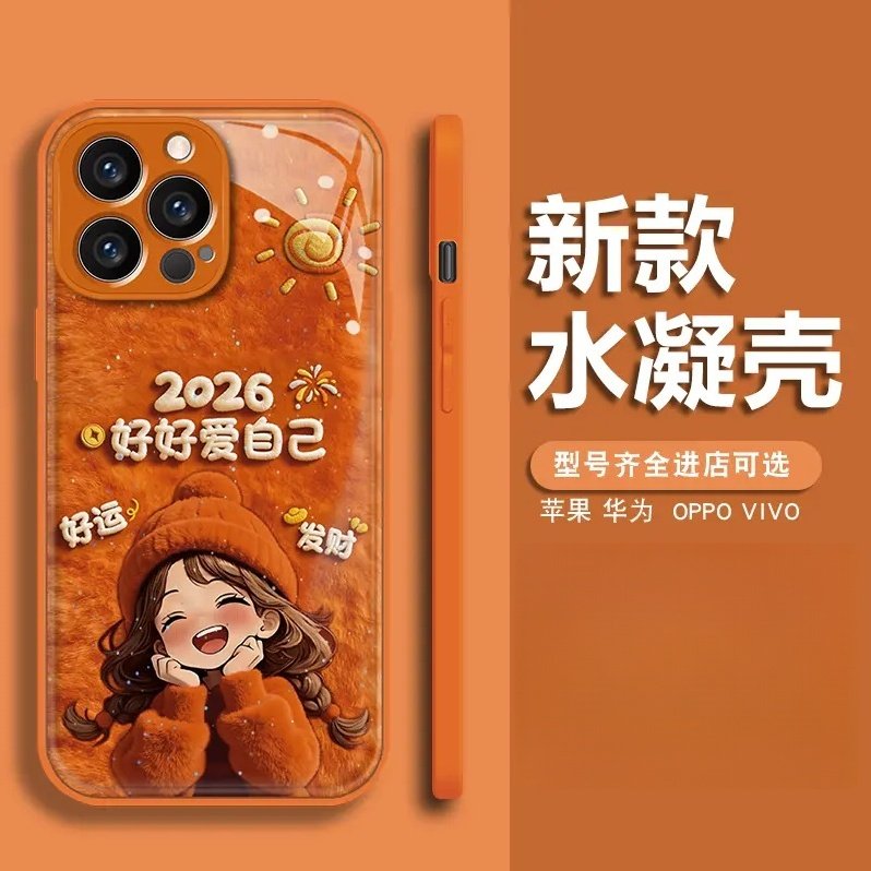 适用苹果/华为vivo/oppo/小米红米/荣耀手机壳金属漆橙色水凝壳2026好好爱自己16promax外壳巨好看的17保护套