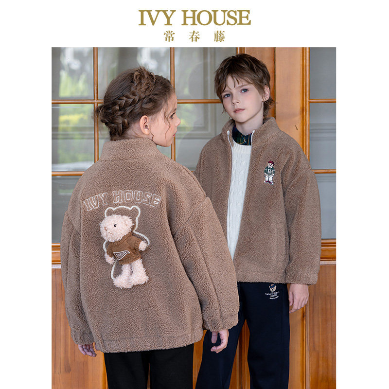 IVY HOUSE常春藤童装男女童冬季 学院仿羊羔绒外套保暖绒里亲子装