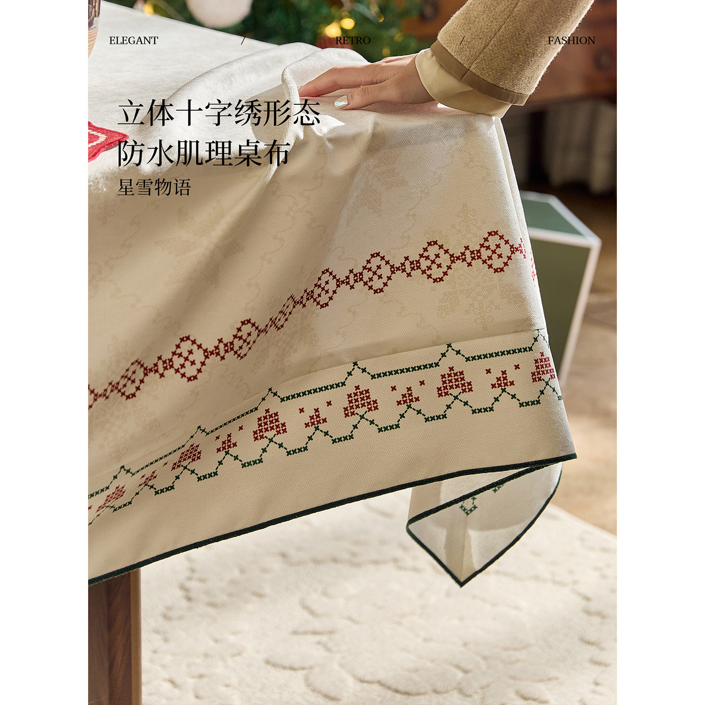 蜡笔派星雪物语桌布简约现代防水餐桌盖布新款轻奢新年节日茶几布