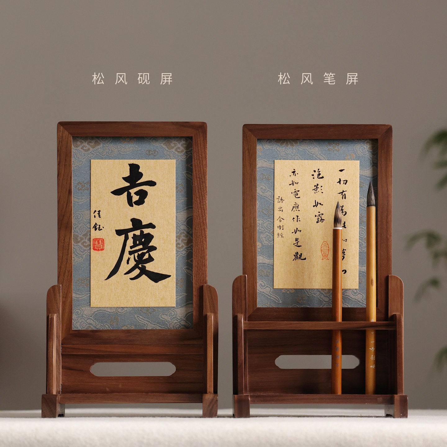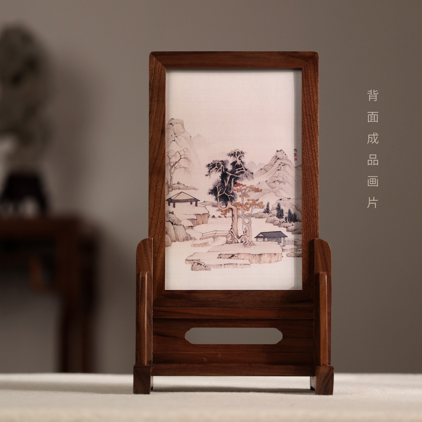 松风砚屏 屏风北美黑胡桃木仿古中式实木桌面台屏摆件书桌用木器