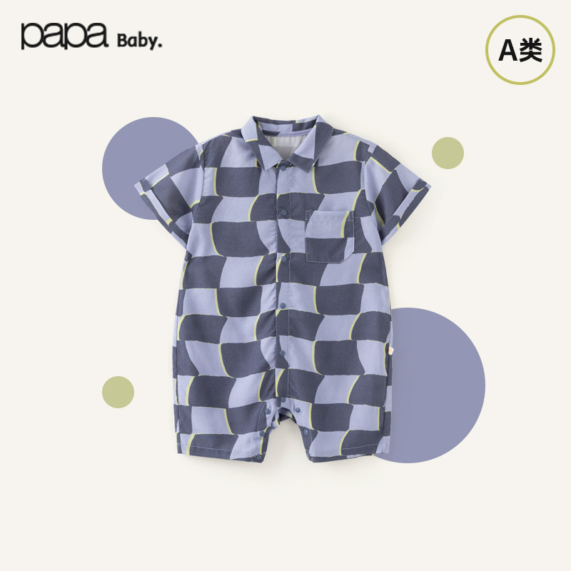 papa爬爬夏季新款男女宝宝连体衣婴儿爬服天丝人棉时髦洋气可爱