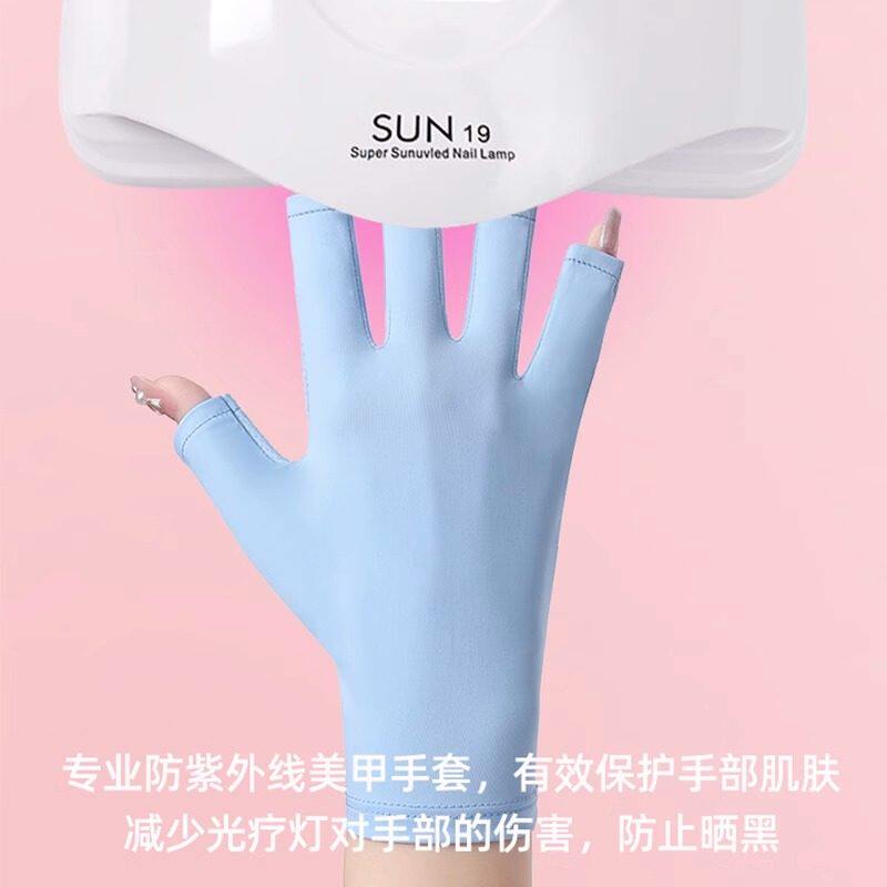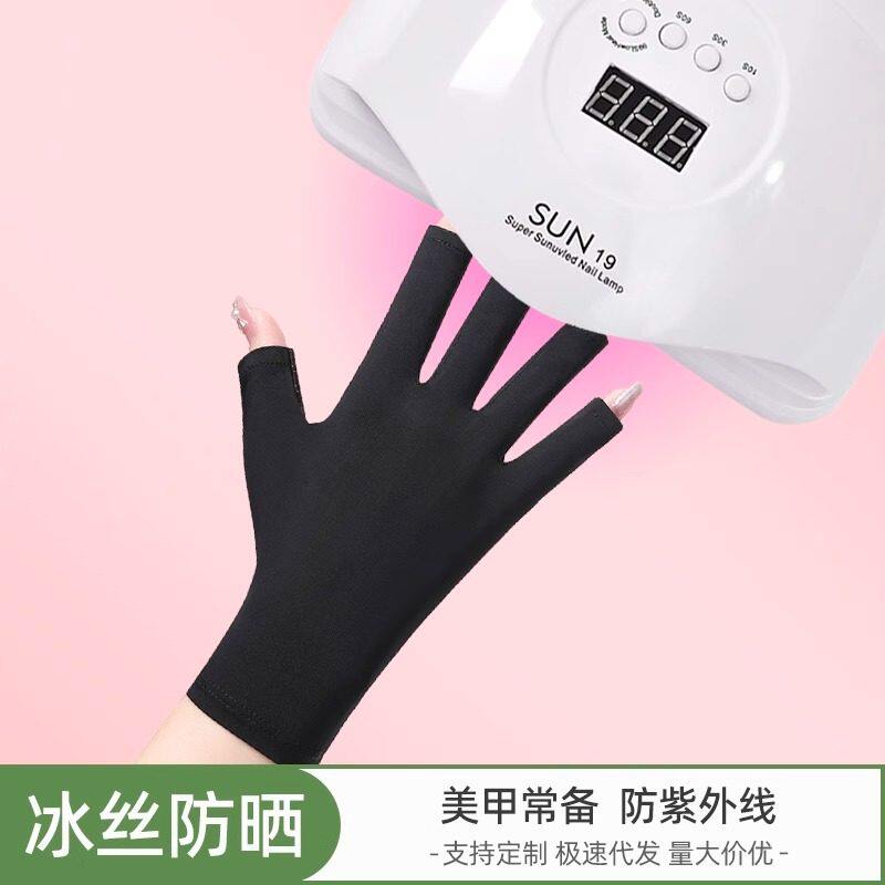美甲防晒手套防紫外线防黑防辐射烤黑手套防护露指照灯做指甲半指