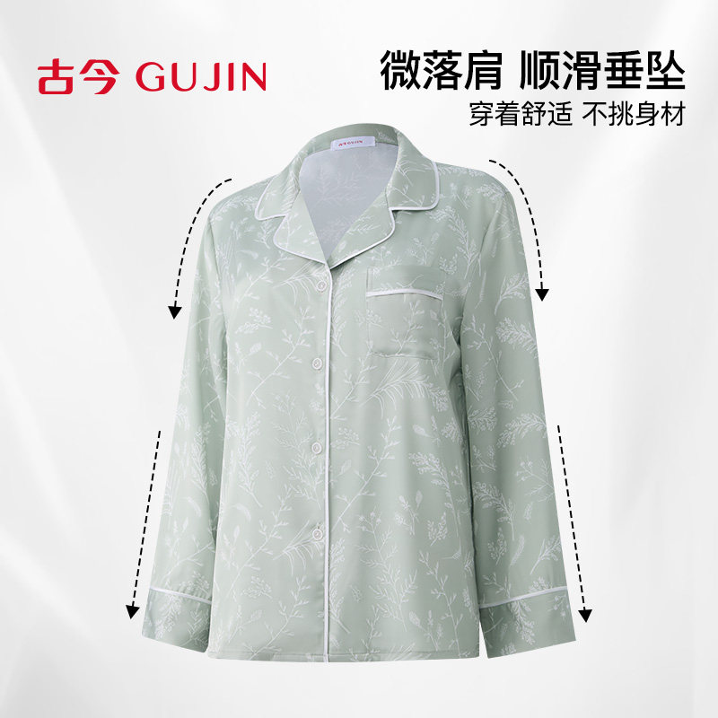 古今睡衣女春冰丝长袖长裤家居服套装可外穿休闲宽松两件套