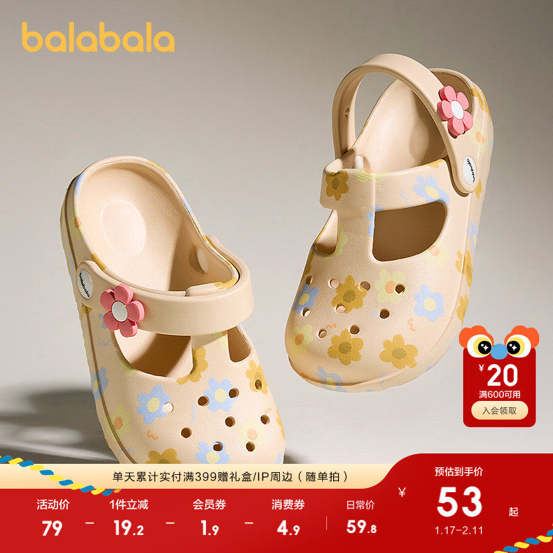 巴拉巴拉童鞋儿童洞洞鞋甜美碎花凉拖鞋2025夏新款防滑软女童凉鞋