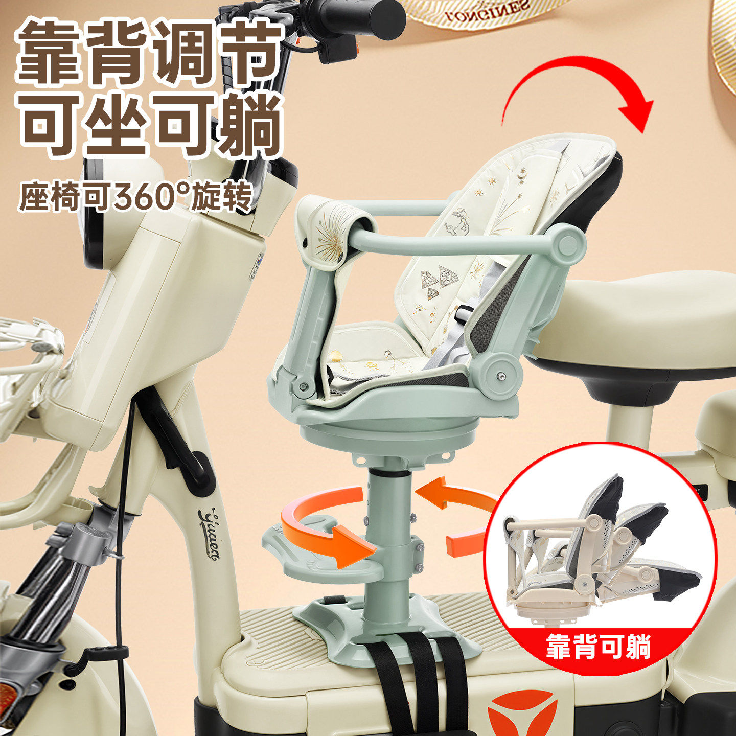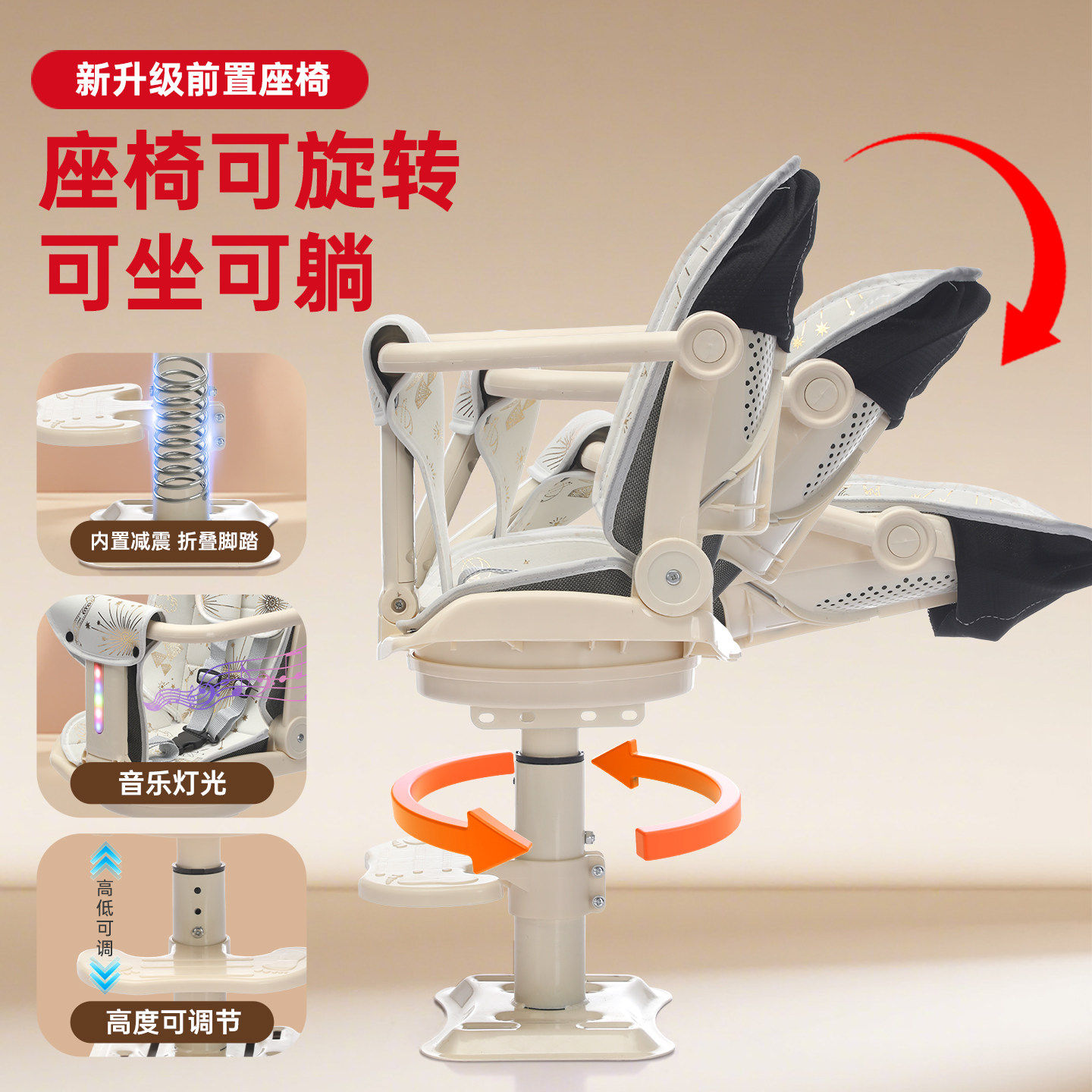 2026电动车儿童座椅前置旋转电瓶车宝宝小孩通用摩托车婴儿减震凳