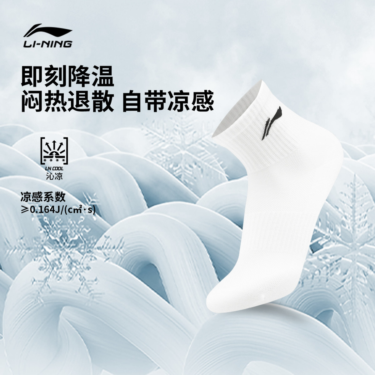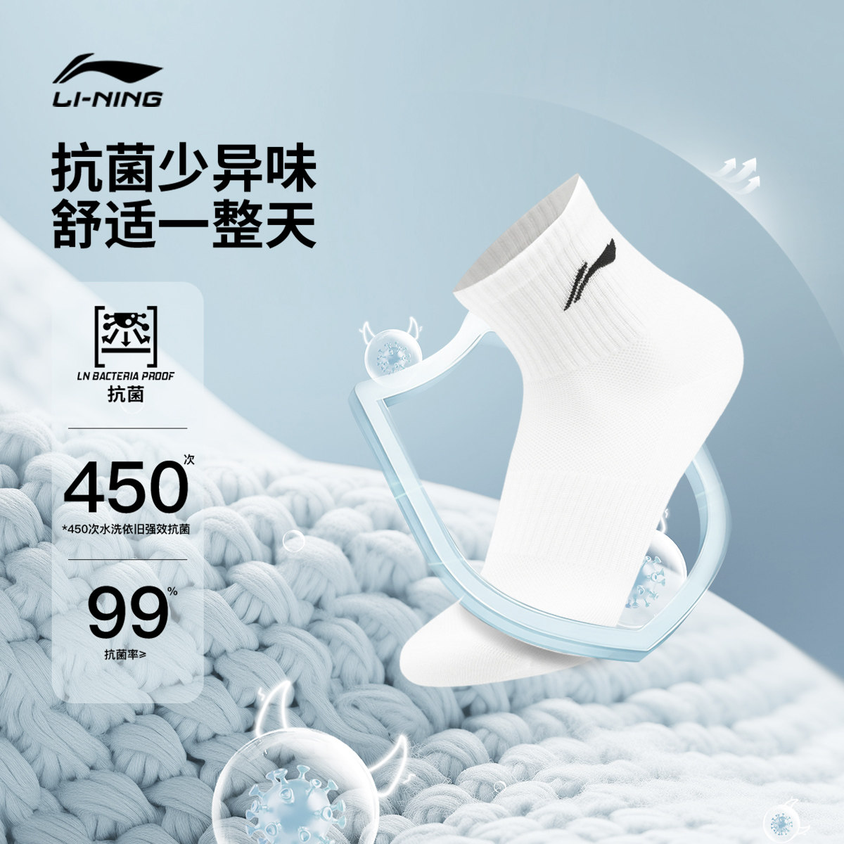 李宁薄荷袜男士纯白色短袜2026新款抗菌透气凉感三双装运动袜子女