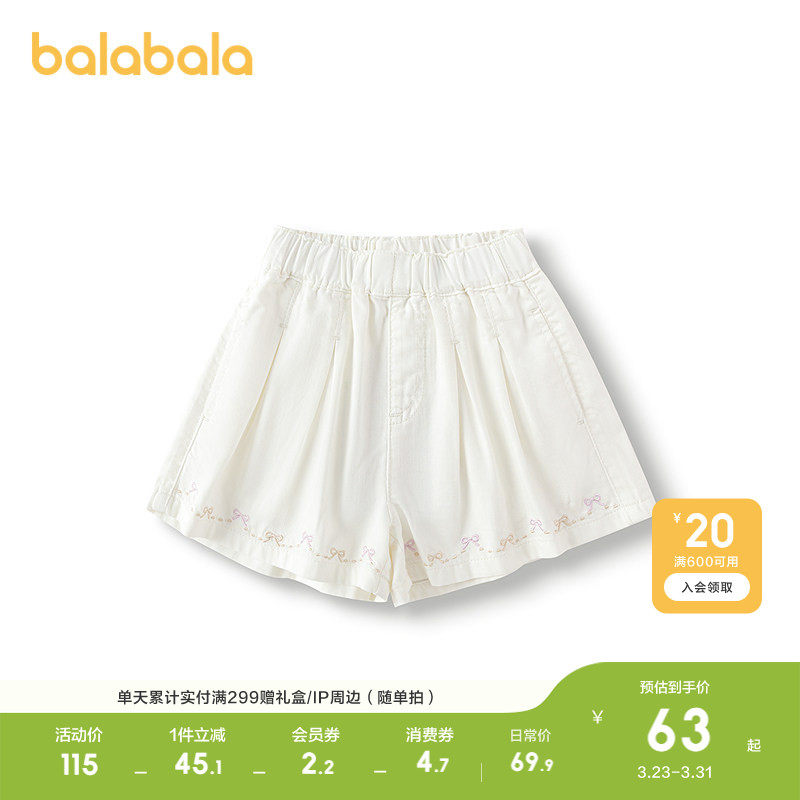 巴拉巴拉童装儿童短裤女童牛仔裤2026夏季休闲A字裙裤蝴蝶结抑菌