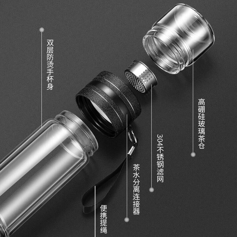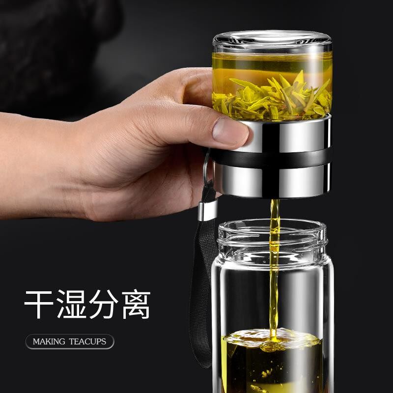 玻璃茶水分离水杯男士双层摔不烂泡茶保温高档隔热防爆便携高硼硅