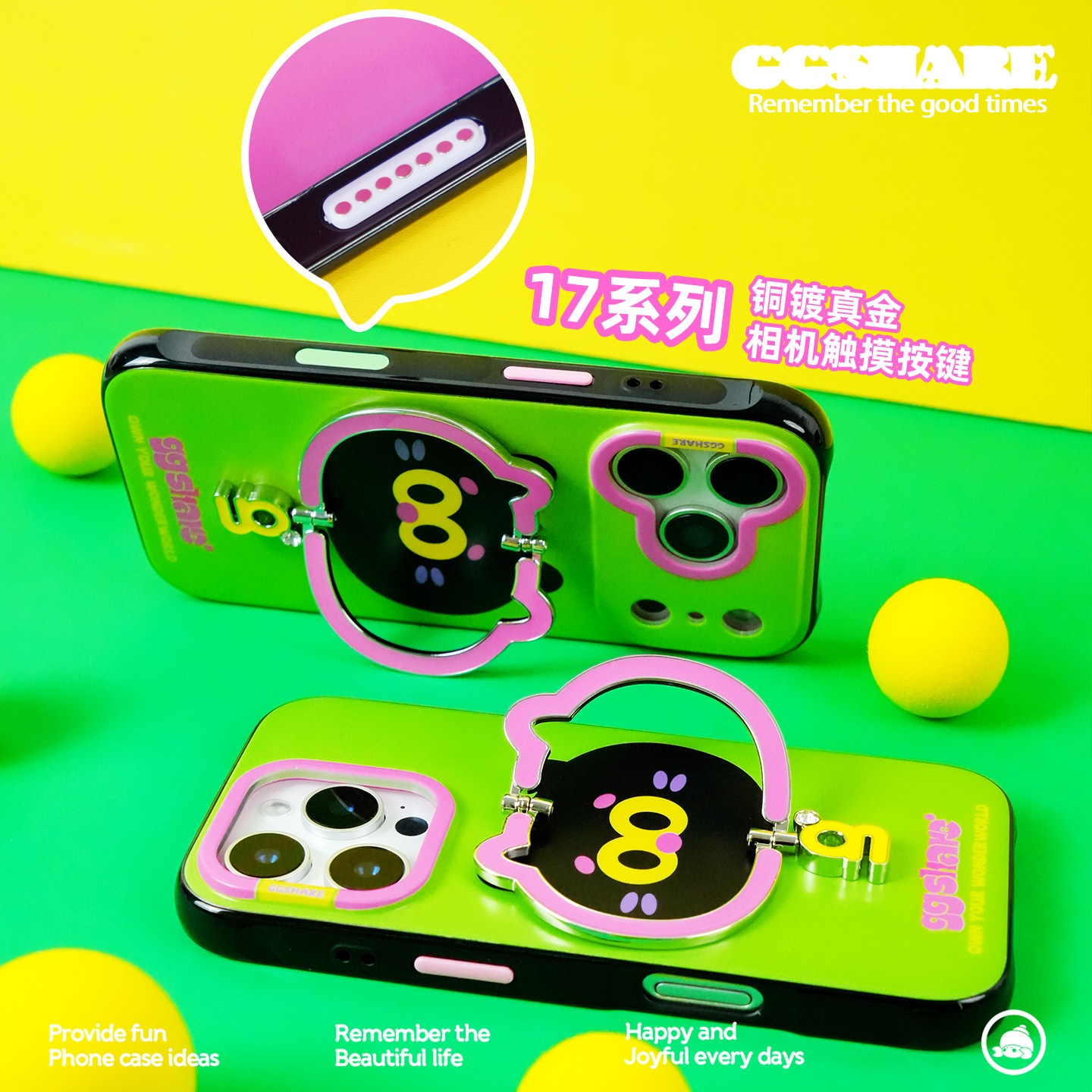 GGSHARE寄居蟹猫猫头适用苹果17手机壳防摔一体式 iPhone16promax保护套新款15手机套14原创超好看防丢手腕绳