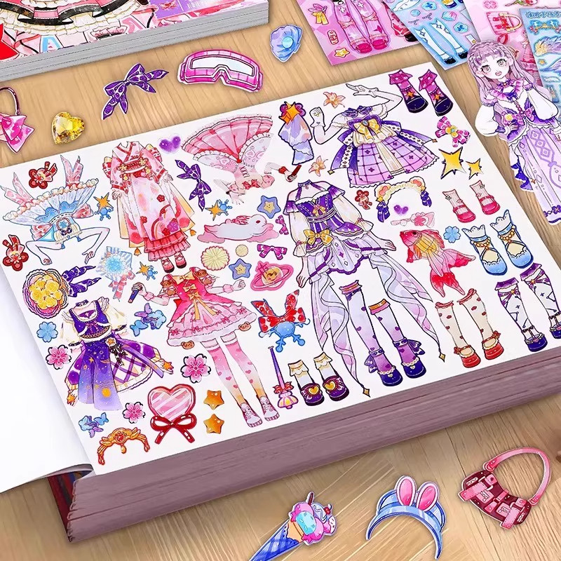 2025新款少女换装贴纸本高颜值儿童安静书贴纸可爱卡通贴贴画美丽公主衣橱贴纸册女孩手工diy手帐装饰素材