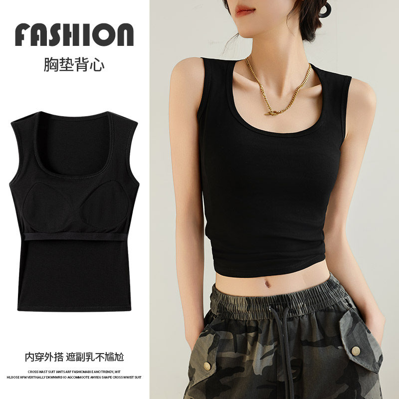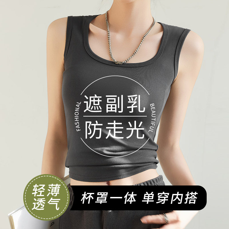 白色背心女士内搭春秋季螺纹纯色棉带胸垫遮副乳修身显瘦无袖上衣