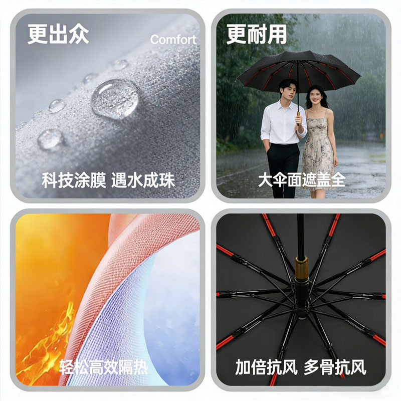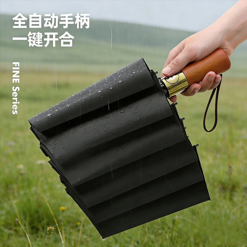 全自动雨伞木柄男加大加固加厚防晒防紫外线遮阳学生用晴雨两用伞