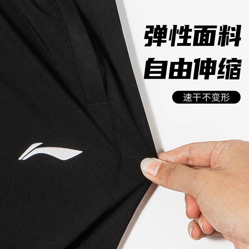 李宁春秋男士速干运动裤收口束脚跑步长裤透气薄款休闲裤七分裤子