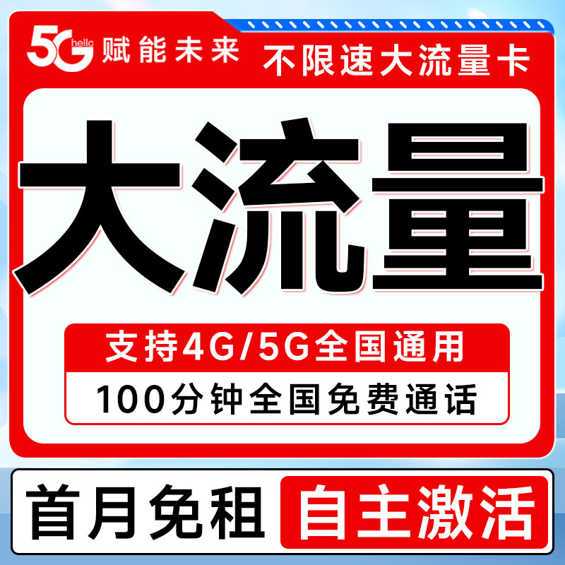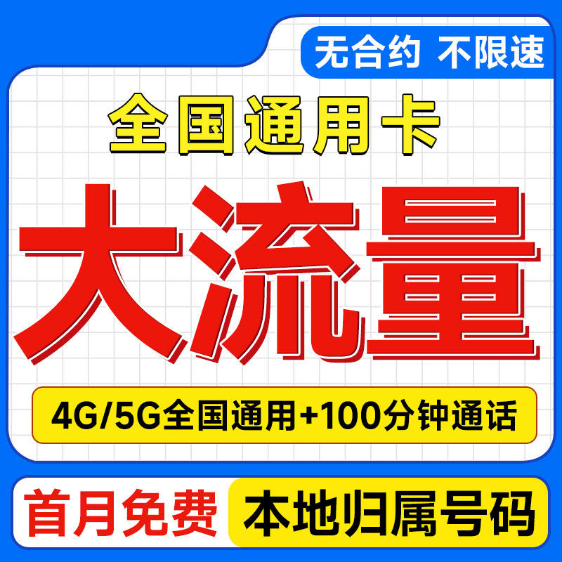 中国流量卡纯流量上网卡5g无线限流量卡手机电话卡全国通用大王卡