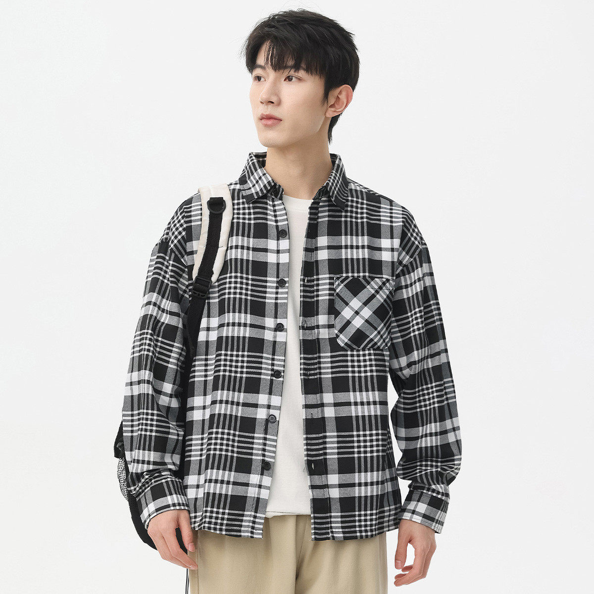 班尼路格子衬衫外套男2025新款春秋男士衬衫长袖男友风休闲上衣J