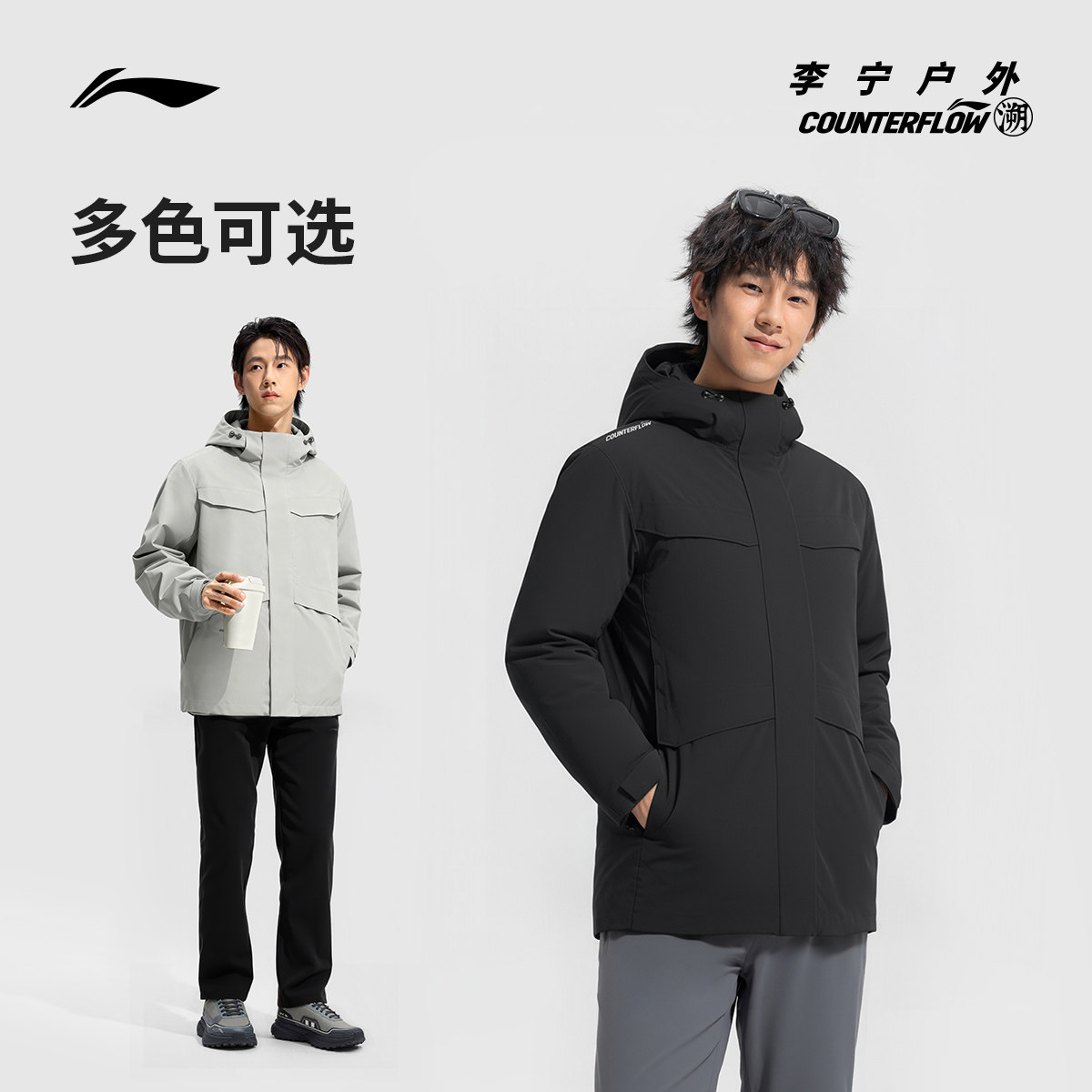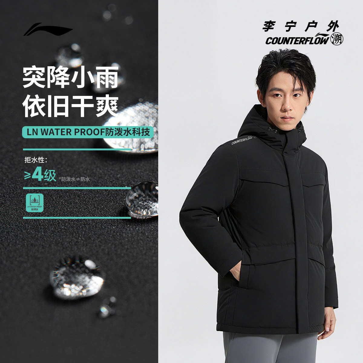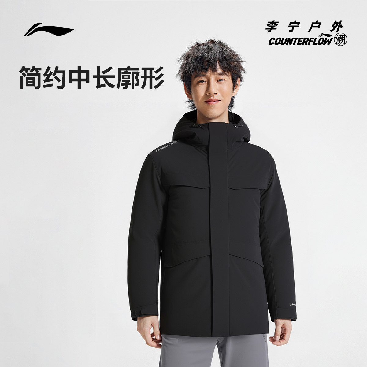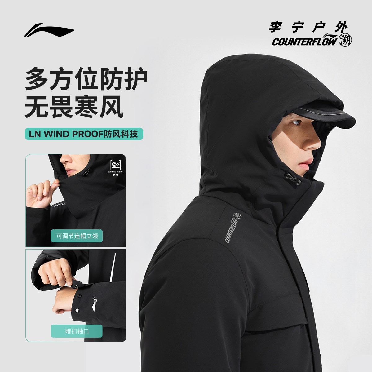 李宁户外CF溯|羽绒服男士连帽加厚梭织防风运动服宽松休闲外套