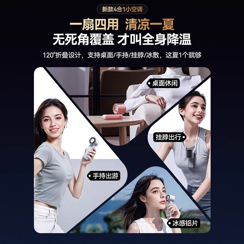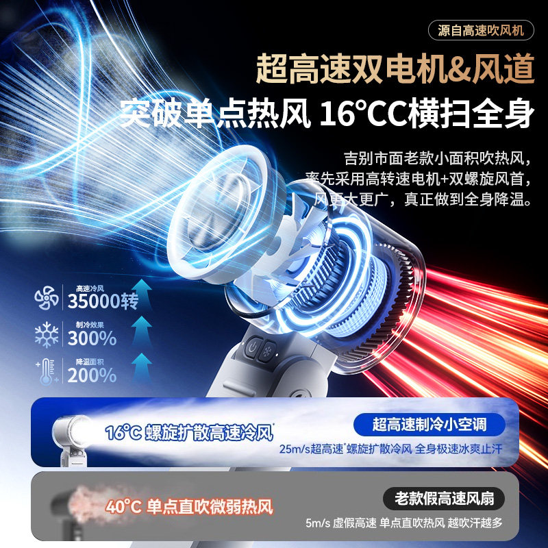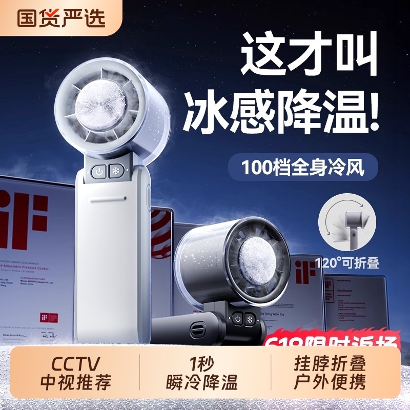 [制冷小空调]超高速强力制冷手持小风扇2025新款桌面挂脖小型静音usb充电风扇学生迷你户外便携冰敷降温神器
