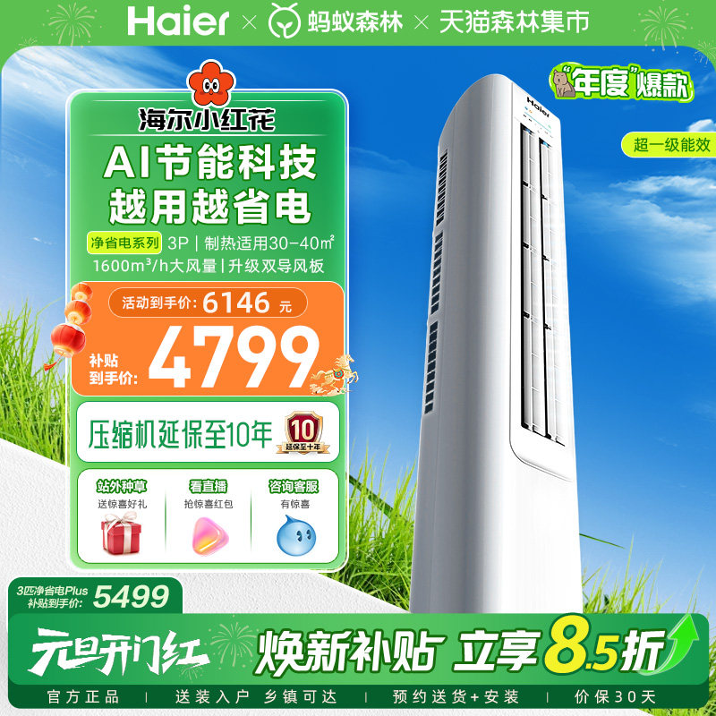 【年度爆款】海尔空调净省电小红花3匹一级变频官方家用立式柜机