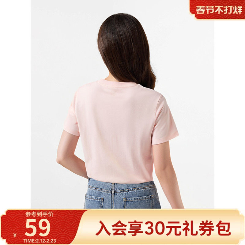 热风粉色短袖T恤上衣2025年夏季新款女士爱心图案T恤甜美学生T恤