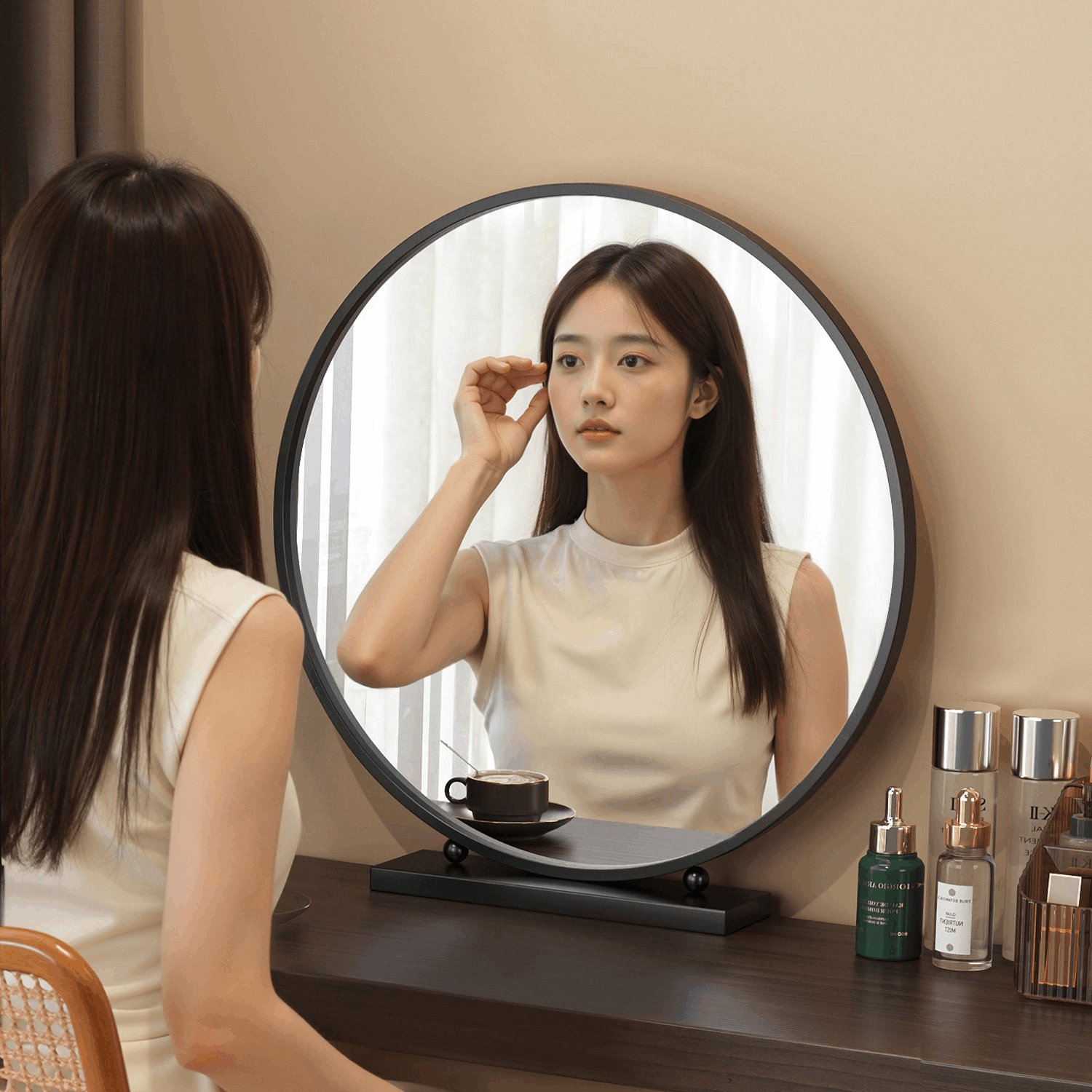 2026新款梳妆台镜子带灯女生房间桌面卧室轻奢复古台式led化妆镜