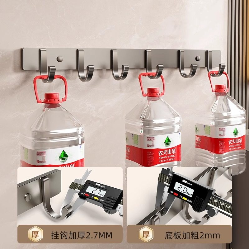 橱柜门后挂钩一排可滑动轨道免打孔粘挂杆神器勺子铲子厨具收纳架