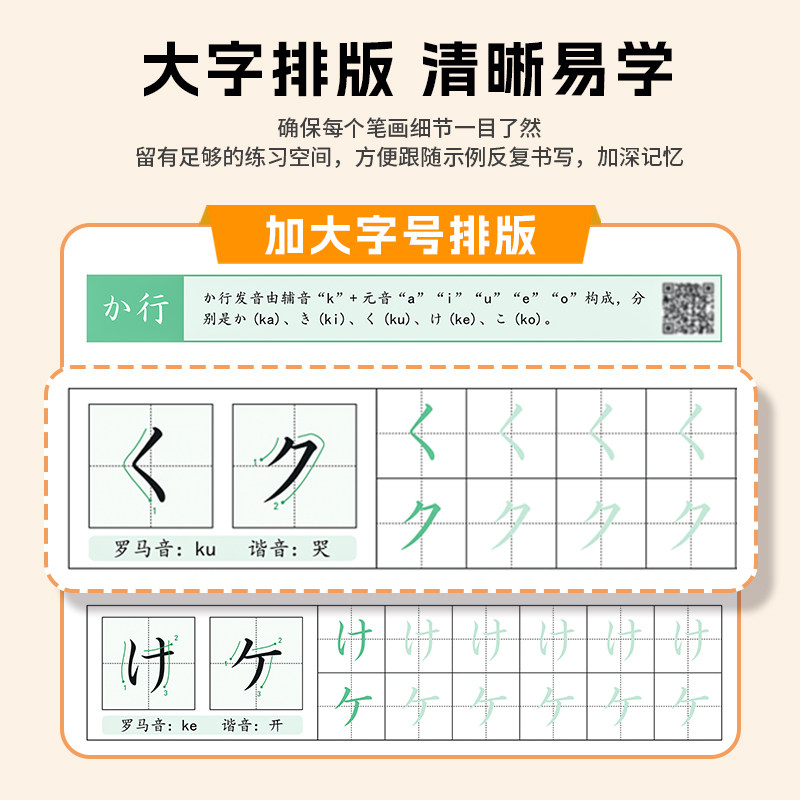 【日语字帖】日文五十音练字帖零基础标准日文手写体描红练习本