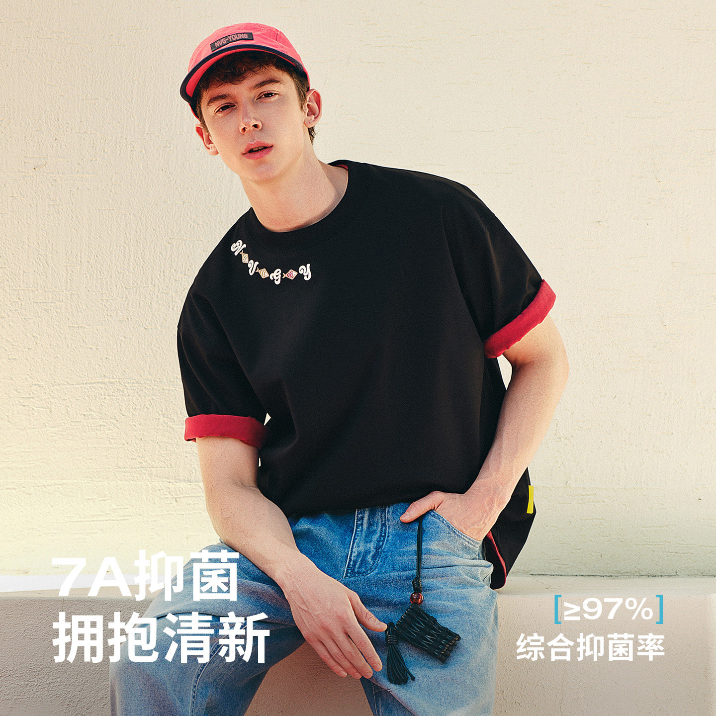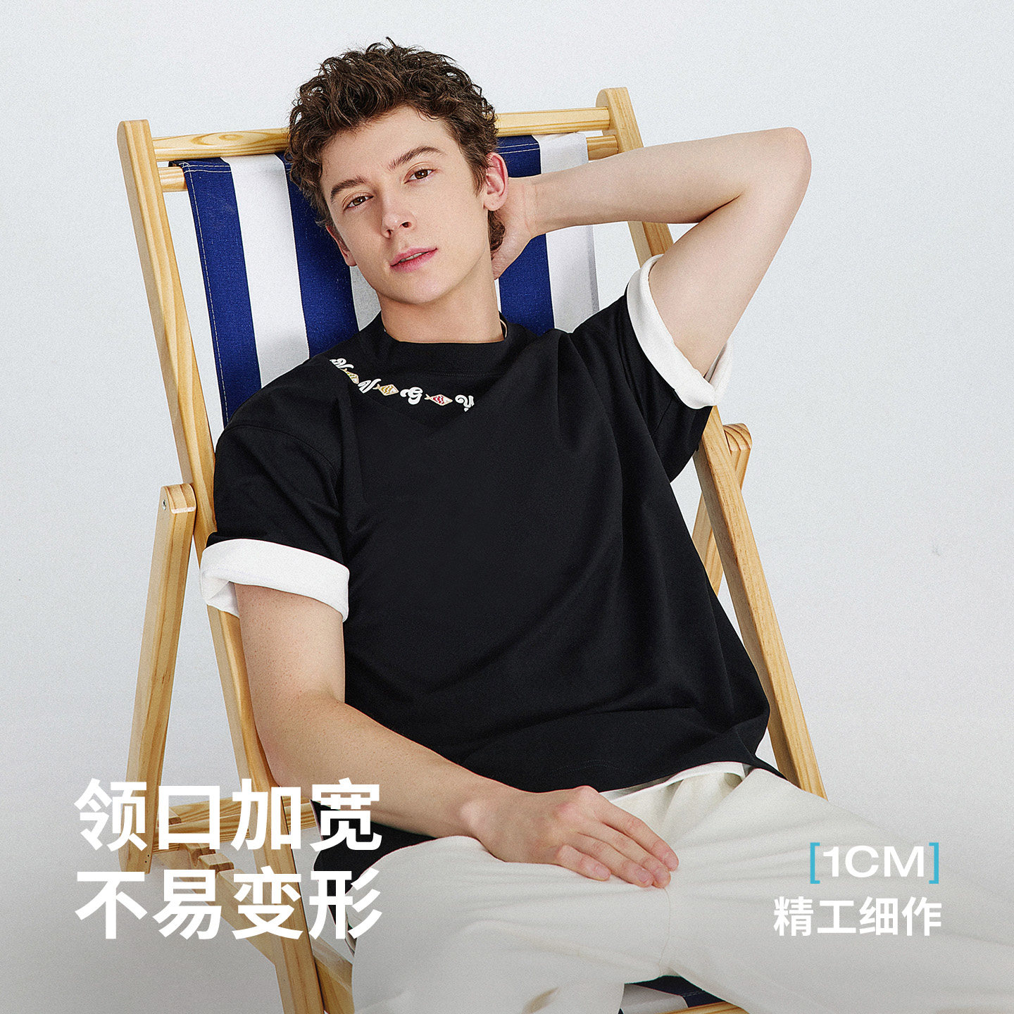 【春上新系列凉感】杰克琼斯男装新款纯色打底衫刺绣短袖男款T恤