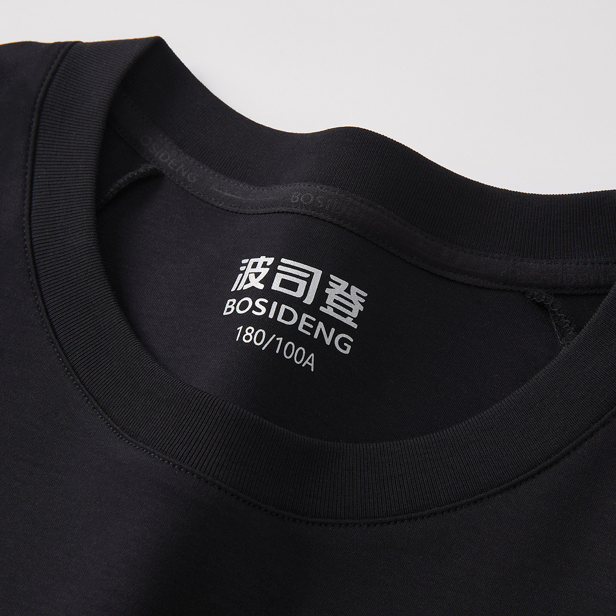 波司登2025男夏季黑色纯色短袖T恤时尚休闲百搭舒适圆领宽松透气