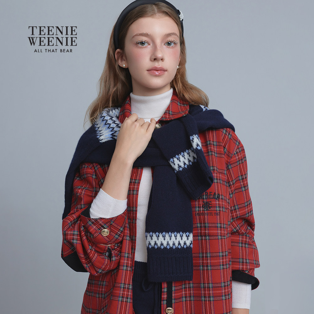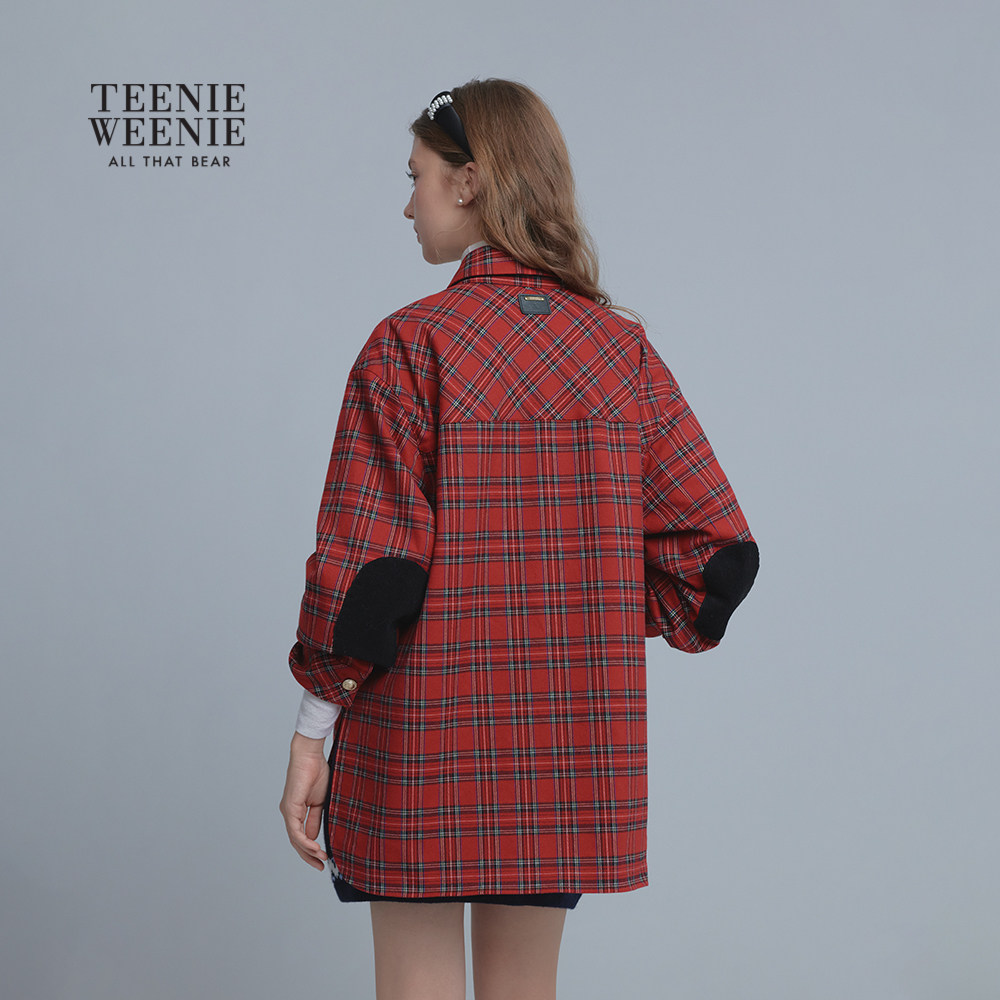 TeenieWeenie小熊女装大衣25冬季新款复古时尚衬衫式格纹毛呢外套