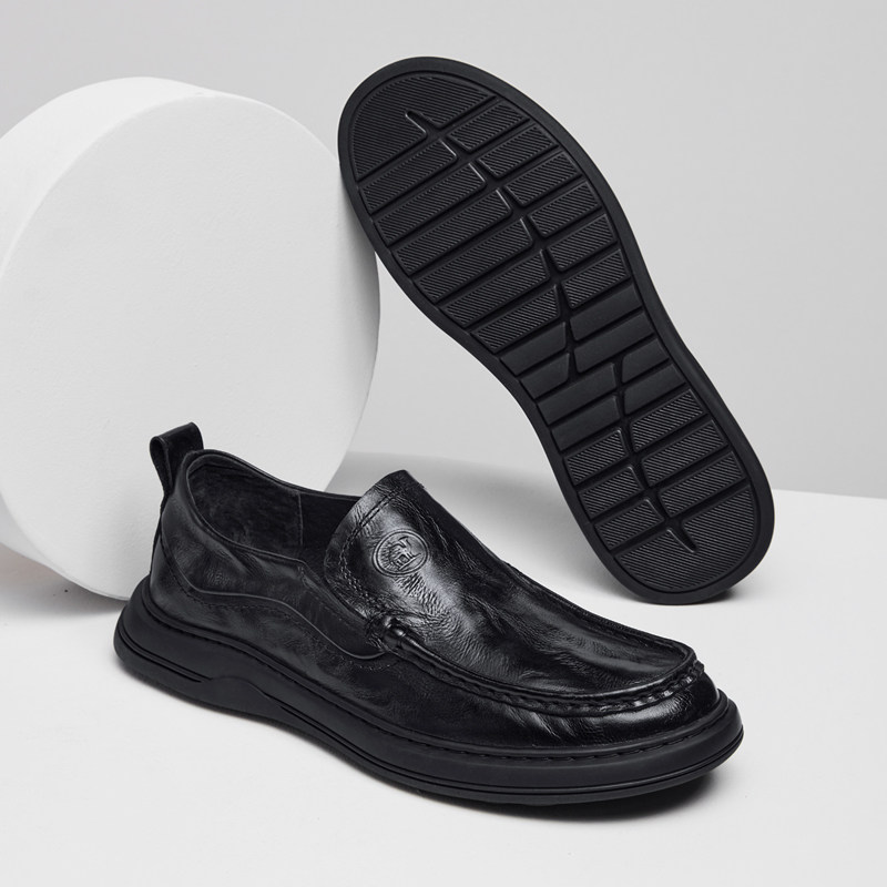 【小牛皮】青润chioryn袋鼠鞋男黑色真皮增高厚底休闲通勤风皮鞋