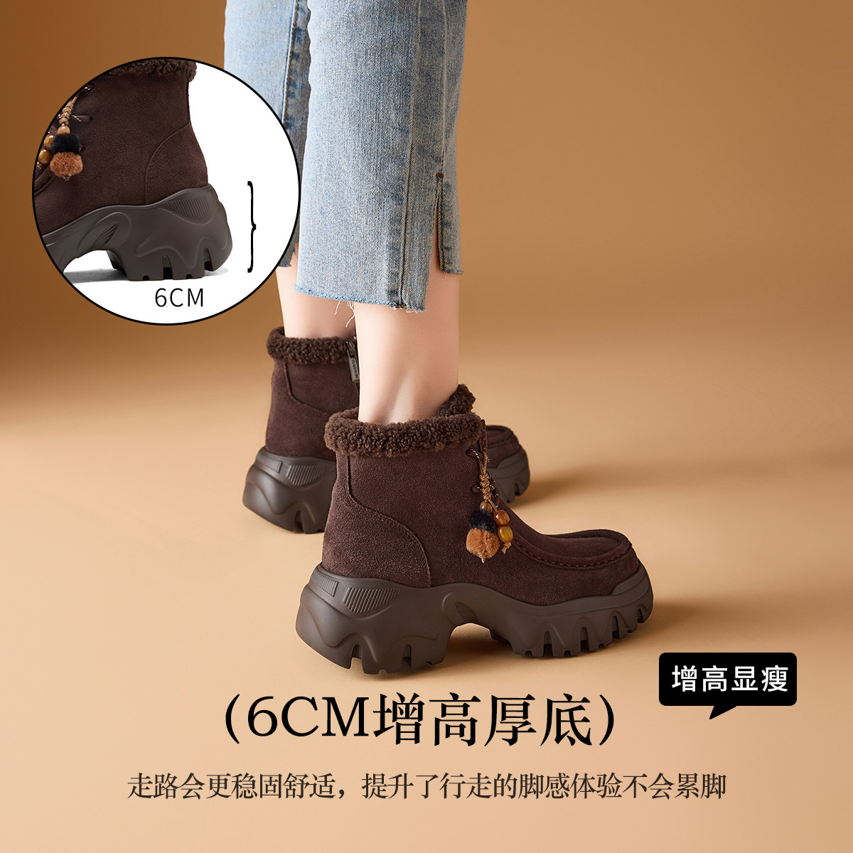miu家厚底雪地靴女冬季真皮短靴羊毛侧拉链增高厚底加绒毛毛棉鞋