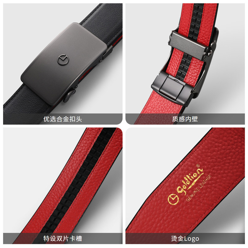 【本命年】金利来皮带男新款商务自动扣头层真牛皮红色裤腰带送礼