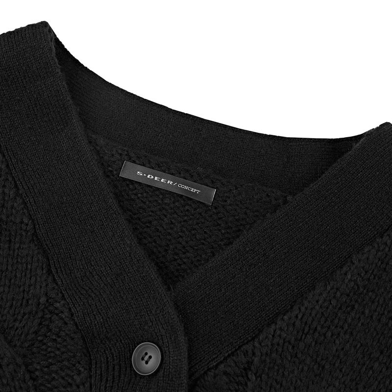 sdeer圣迪奥新品女装复古V领拼接针织开衫毛衣S20483515