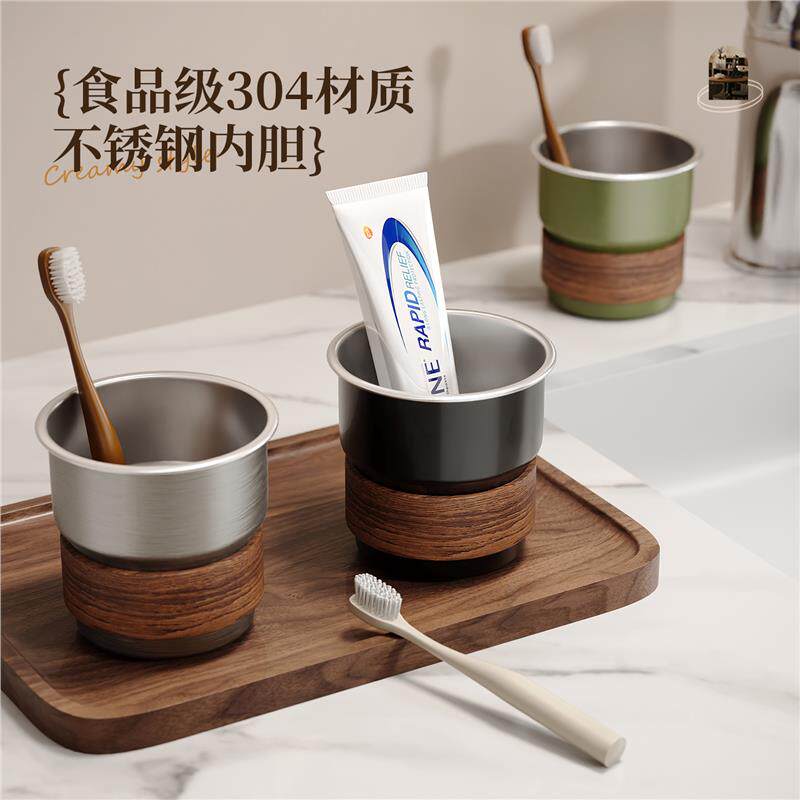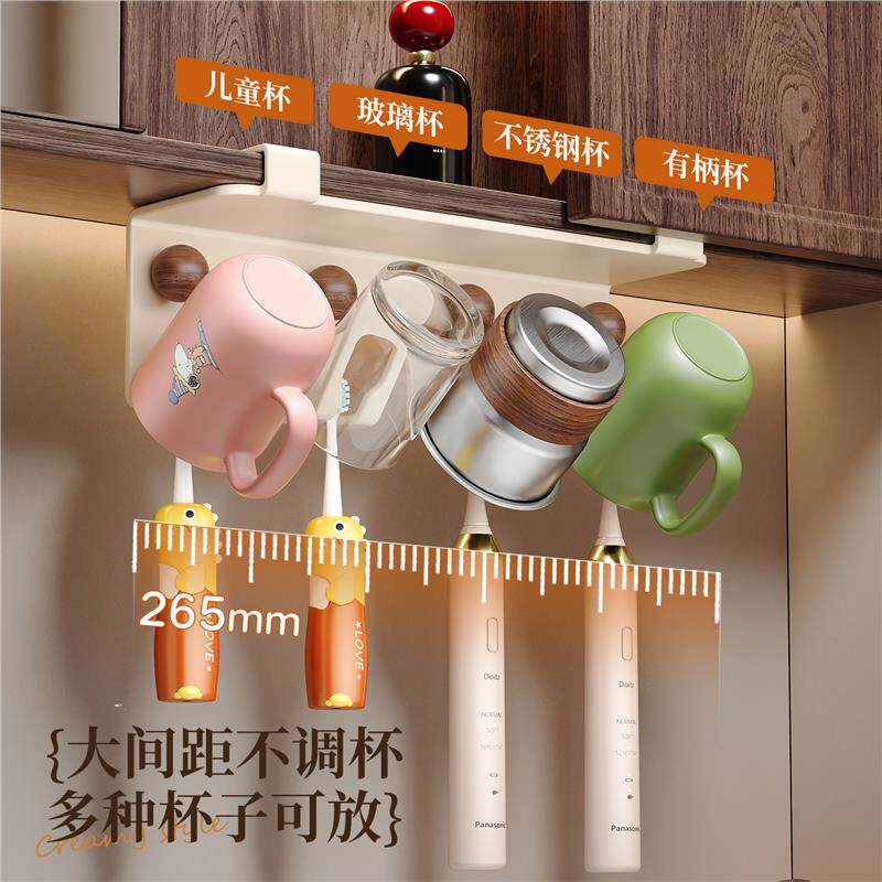 牙刷置物架倒挂免打孔中古风卫生间洗漱台镜柜下漱口杯收纳架牙膏