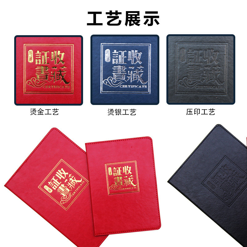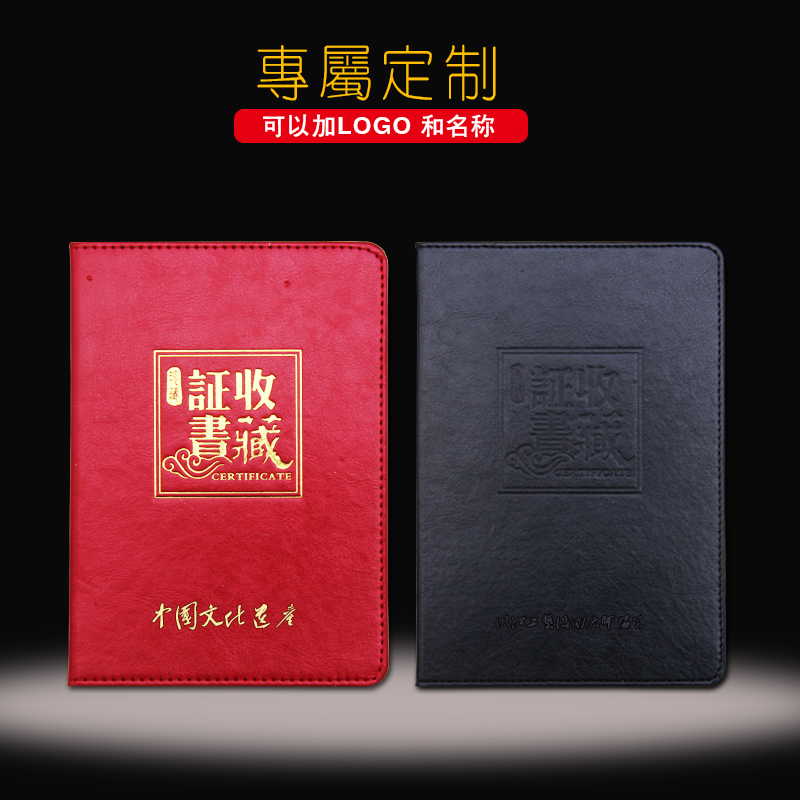 定制高档皮款收藏证书套 定做个性创意仿皮古董外壳玉石封皮瓷器证书古玩藏品证书制作烫金 批发订制红蓝色