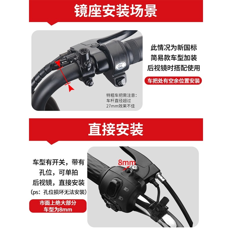电动电瓶车后视镜自行车圆镜适用雅迪爱玛大视野倒车反光镜子通用