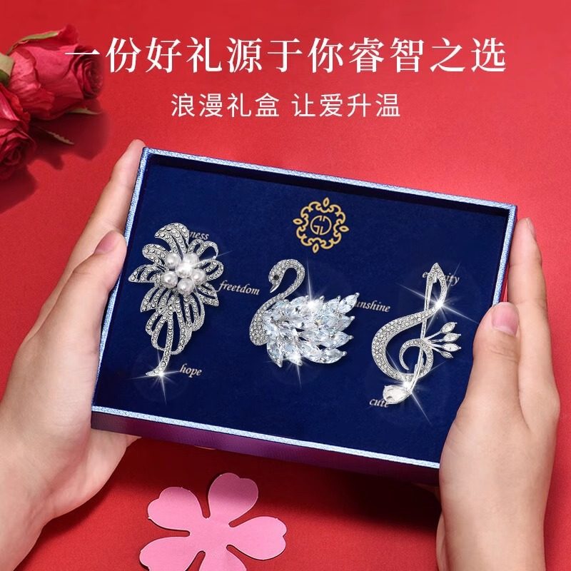 生日礼物送老婆高级感精致天鹅胸针西装大衣胸花别针气质闺蜜麦穗
