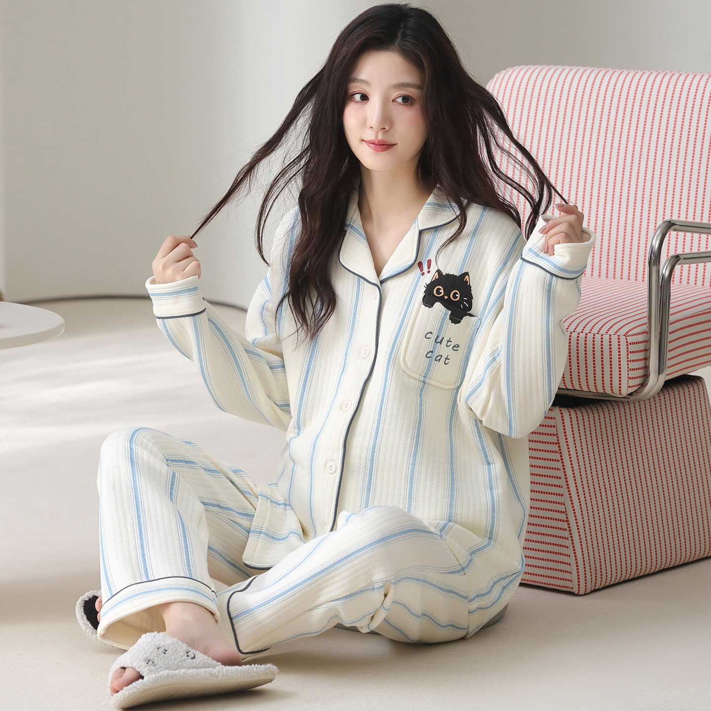 春秋季云感棉带胸垫月子服产后产妇秋冬12月份孕妇哺乳睡衣家居服