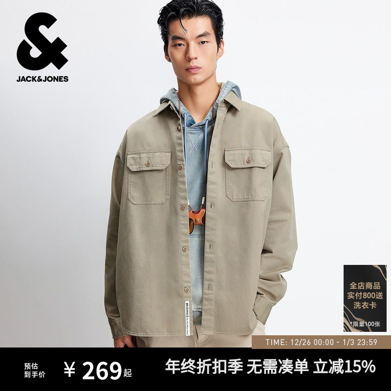 杰克琼斯男装秋季新款工装衬衫休闲口袋外套长袖衬衣男士痞帅夹克