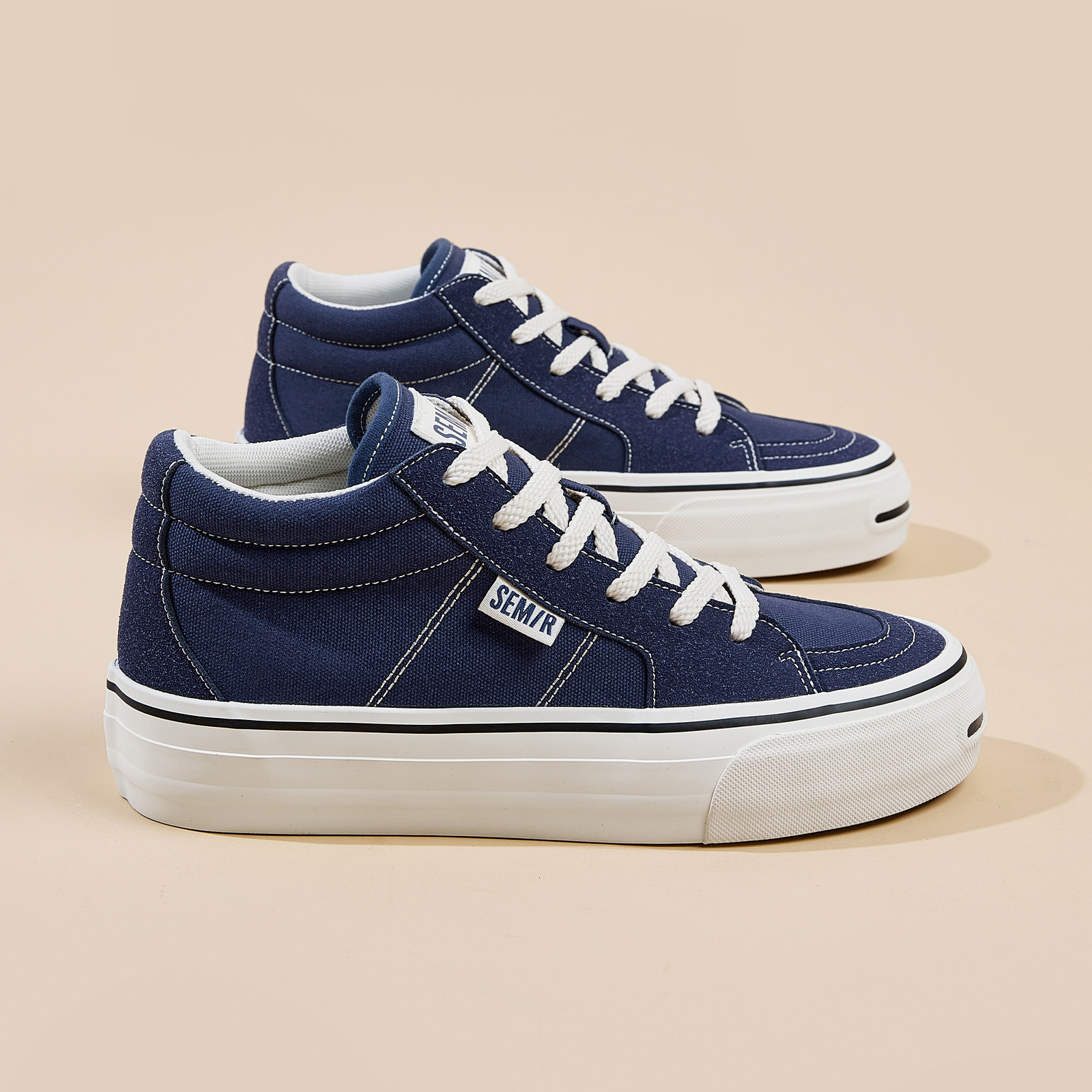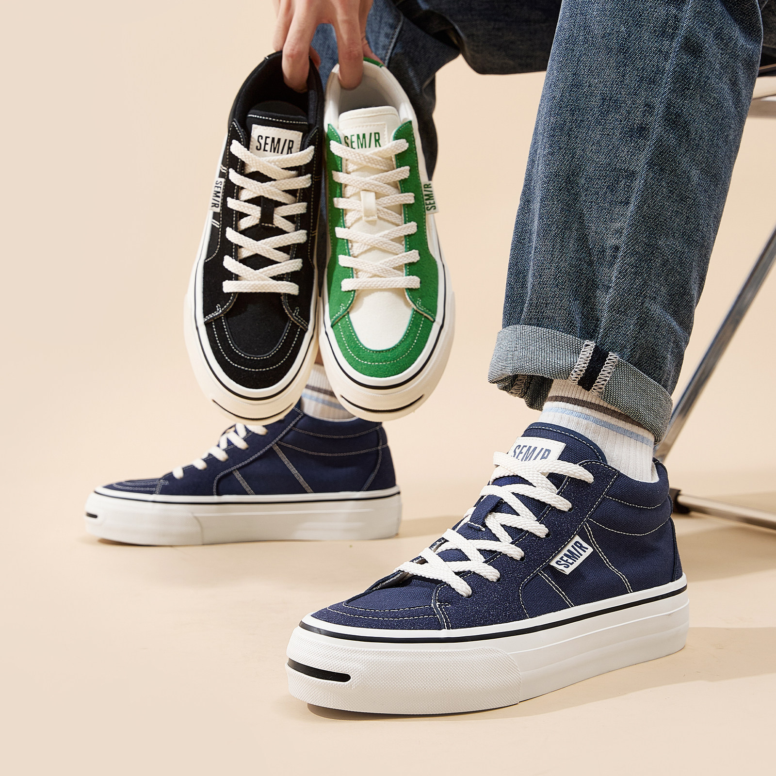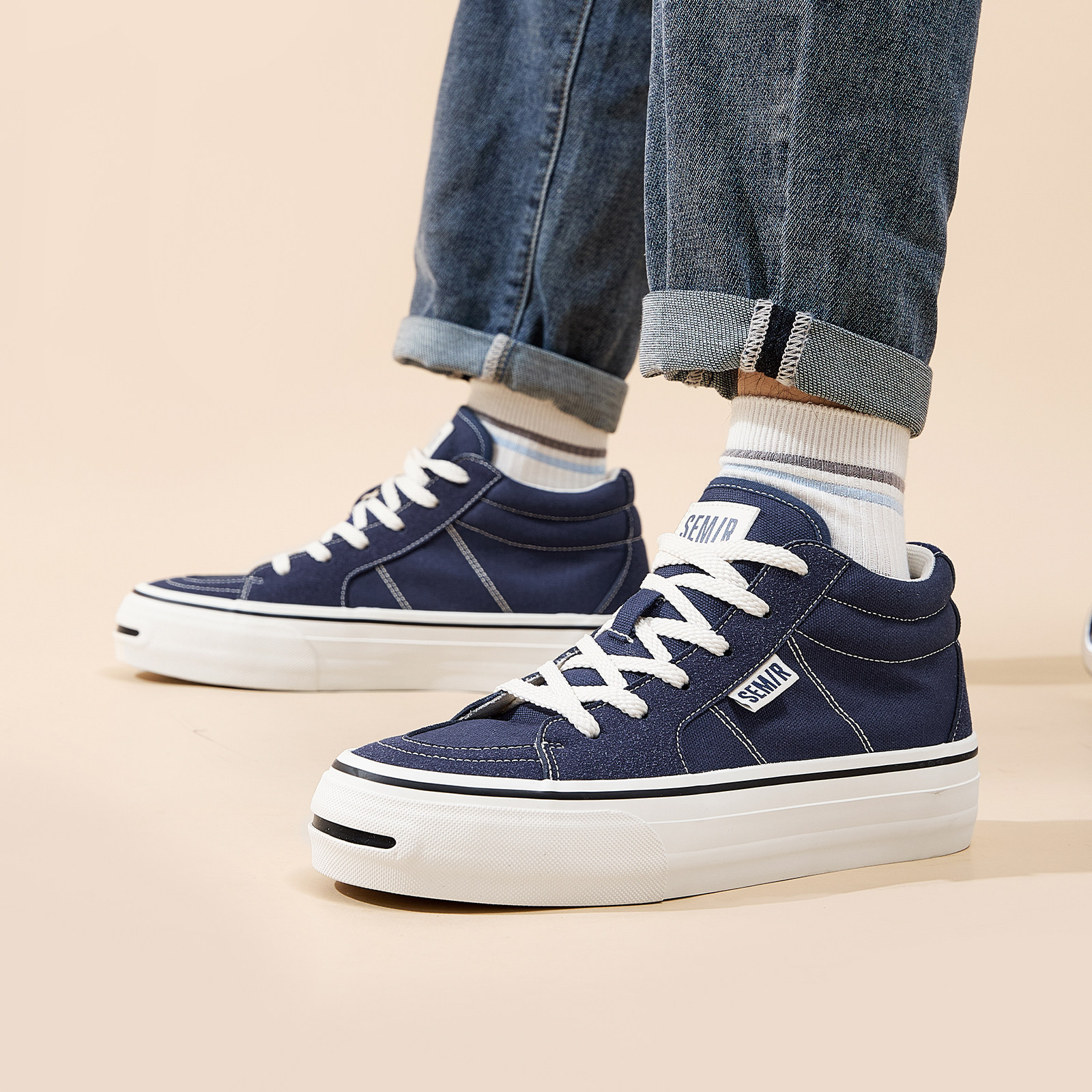 Semir高帮帆布鞋男2025新款秋冬黑色百搭休闲厚底增高开口笑板鞋