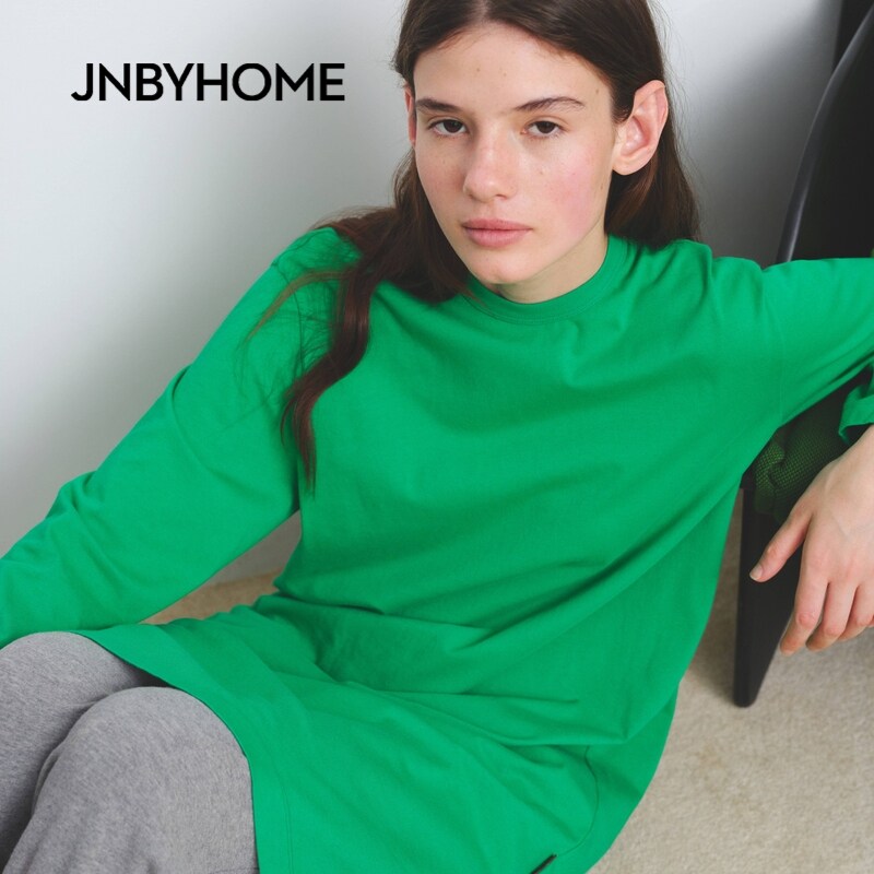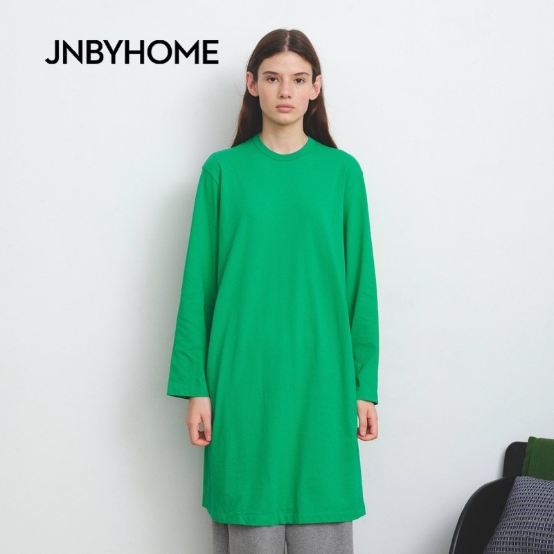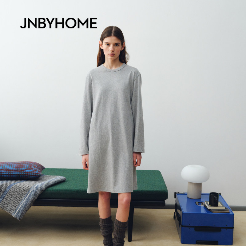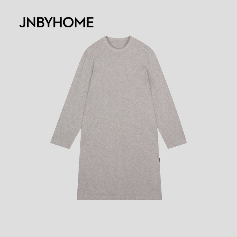 JNBYHOME江南布衣25年秋季女圆领长袖家居睡裙中长款休闲纯色简约