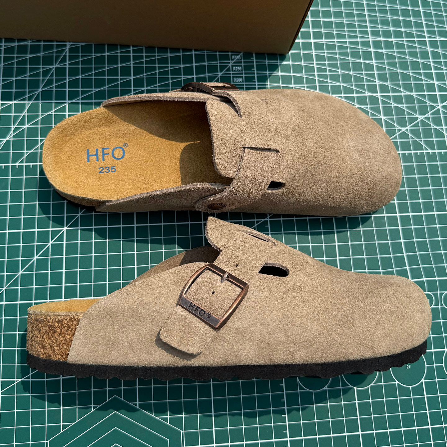 限时伴价78!真皮勃肯鞋2025新款包头半拖鞋女夏外穿平底博肯鞋男
